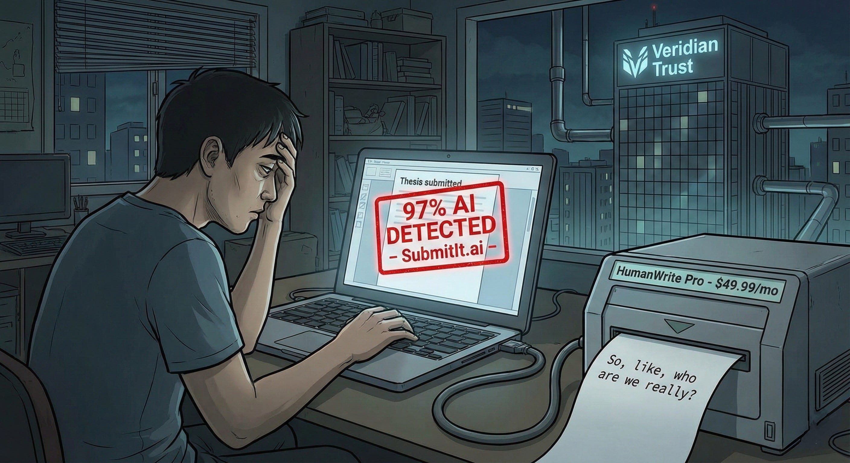 The pattern was clear. Coherent arguments looked like AI. Well-structured prose looked like machines. Zero typos looked suspicious.